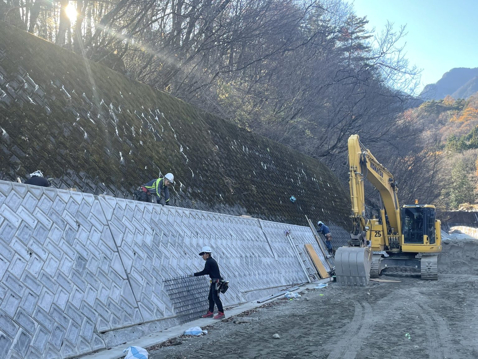 山梨の地形と水を熟知した、公共工事を中心とした土木業。河川、堰堤、治山など、地域の暮らしと安全を守るインフラ整備を、地質の見極めから丁寧に進めます。